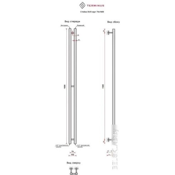 Важно! Информация о товаре «TERMINUS Стойка Duo Круг 70х1600 (золото)» и его характеристиках предоставлена для предварительного ознакомления и не является публичной офертой. Описание товара подготовлено по материалам, представленным на сайте производителя TERMINUS, а также с использованием электронных и печатных каталогов. Производитель TERMINUS оставляет за собой право вносить изменения в характеристики или комплектацию товара без предварительного уведомления. Для уточнения всех важных для Вас характеристик, сообщите консультанту артикул .