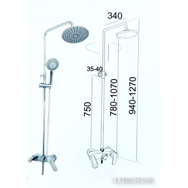 | Комплектация | верхний душ, штанга, ручной душ (лейка), держатель лейки, шланг, смеситель, излив для ванны |