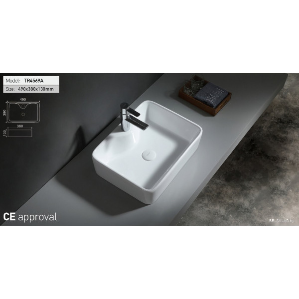 Uptrend Torvi TR4569A (белый глянцевый) - 48.5x38 см, с одной чашей, накладной, керамика, крепление на мебельный шкаф/на столешницу. Оригинальный Uptrend от производителя подтверждённый сертификатом соответствия.