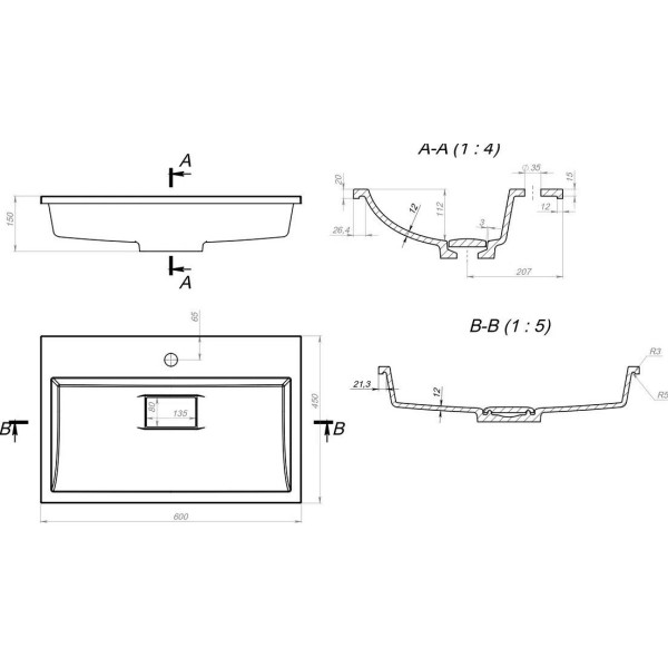 Versalia Absolute 60 - 60x45 см, с одной чашей, накладной, искусственный мрамор, крепление на мебельный шкаф/на столешницу. Оригинальный Versalia от производителя подтверждённый сертификатом соответствия.