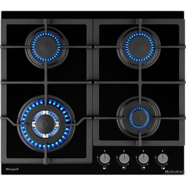 Weissgauff HGG 641 BGL - газовая на 4 конфорки, закаленное стекло, мощность: 8100 Вт, автоматический электроподжиг, газ-контроль, решетки: чугун, независимая установка, размеры (ШхГ): 60x52 см. Оригинальный Weissgauff от производителя GD МIDЕA AIR-CONDITIONING ЕQUIPМЕNТ Co. LТD'. Aдpес:Мidea Industriality ShundeD istriсtЕ oshanC ity GuangdоngP rovinсе5 28e11P .R. China Китaй подтверждённый сертификатом соответствия.