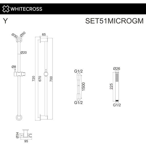 Whitecross SET51MICROGM (оружейная сталь) - душевой гарнитур (без верхнего душа), настенный монтаж, отсутствует смеситель, ручной душ 26 мм. Оригинальный Whitecross от производителя подтверждённый сертификатом соответствия.