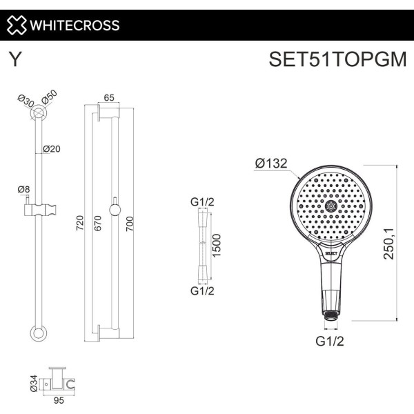 Whitecross SET51TOPGM (оружейная сталь) - душевой гарнитур (без верхнего душа), настенный монтаж, отсутствует смеситель, ручной душ 132 мм. Оригинальный Whitecross от производителя подтверждённый сертификатом соответствия.