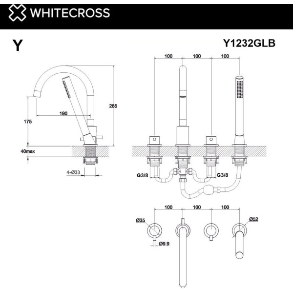 Whitecross Y Y1232GLB (брашированное золото) - однорычажный смеситель для ванны и душа, монтаж на ванну или полку. Оригинальный Whitecross от производителя подтверждённый сертификатом соответствия.