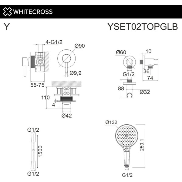 Whitecross Y YSET02TOPGLB (брашированное золото) - душевой гарнитур (без верхнего душа), настенный монтаж, механический смеситель, ручной душ 132 мм. Оригинальный Whitecross от производителя подтверждённый сертификатом соответствия.
