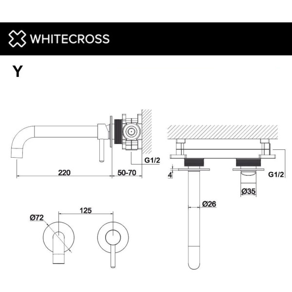 Whitecross Y1215CPB (брашированная медь) - однорычажный смеситель для умывальника, монтаж на стену/скрытый. Оригинальный Whitecross от производителя подтверждённый сертификатом соответствия.