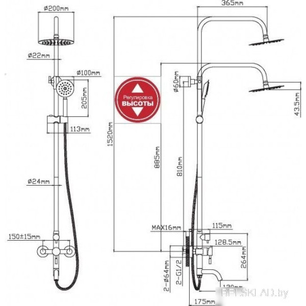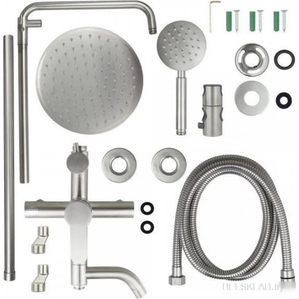 | Комплектация | верхний душ, штанга, ручной душ (лейка), держатель лейки, шланг, смеситель, излив для ванны |