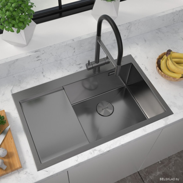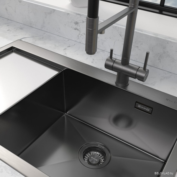 ZorG ZRN 5080 Premium R PVD Gunblack - врезная на столешницу, нержавеющая сталь, фактура: матовая, размеры: 78x50.5 см, глубина чаши: 20 см, в шкаф шириной от 60 см. Оригинальный ZorG от производителя Kotlarska 10 61211 Brno Czech Republic подтверждённый сертификатом соответствия.